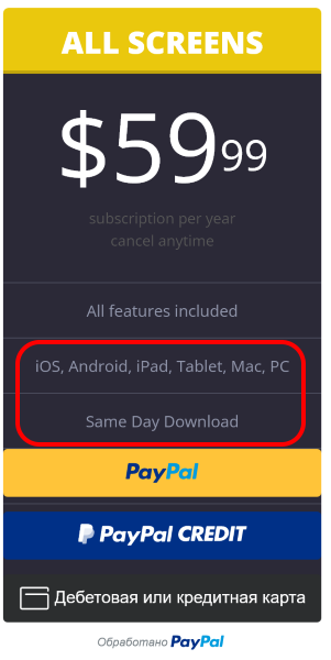 Я оплатил подписку с доступом к версии для всех операционных систем. Про что написано на экране оплаты с пометкой «загрузка в тот же день».