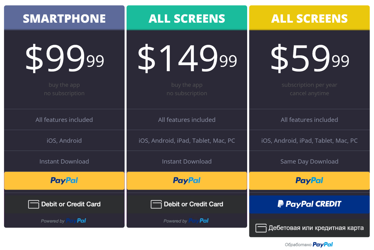 - Кроссплатформенная версия с разовой оплатой за $149.99;