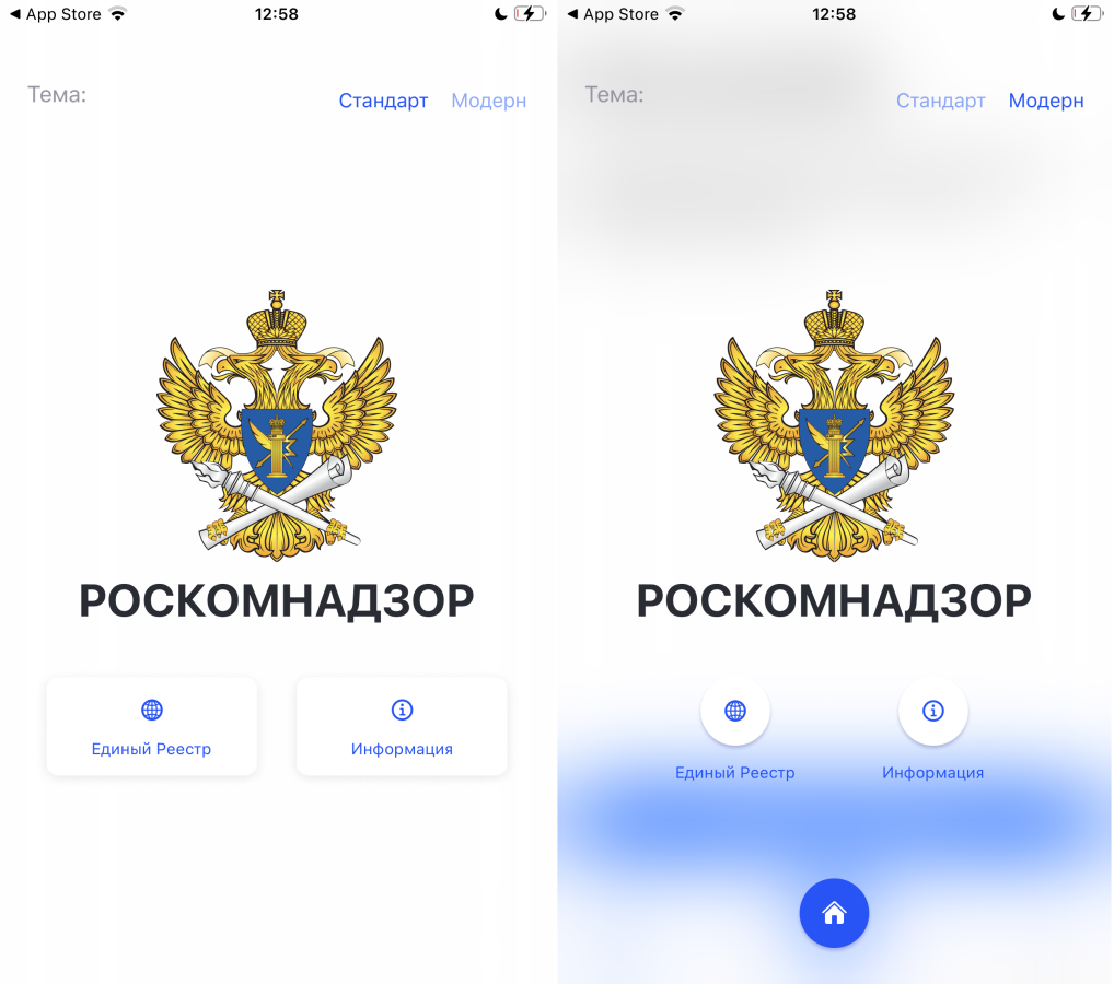 Думаю, что все уже привыкли к кривым и неудобным государственным сервисам. В этом плане РКН приятно удивляет. Сразу на главном экране можно выбирать между стандартной темой и модерн.