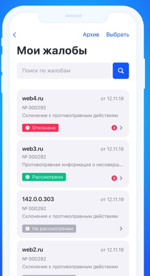 Если вы справились с предыдущей задачей, то в списке Мои жалобы сможете отслеживать их статус. Как и в случае с сайтами есть поиск и отображение краткой и подробной информации по каждой кляузе.