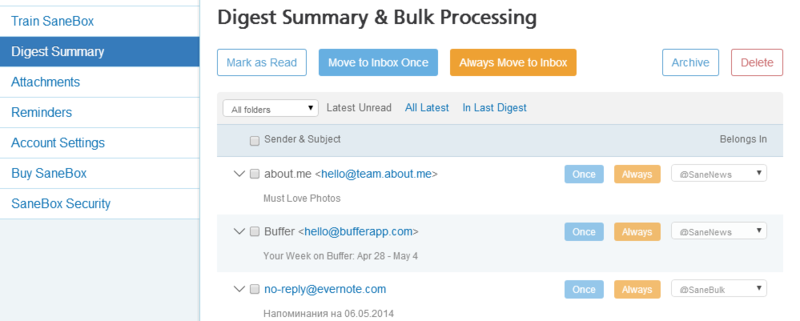 Недавно я писал о том, как я избавился от лишних почтовых оповещений. Система работает отлично, но она слишком зависит от фильтов и почтовых клиентов. И вот я набрел на сервис SaneBox.