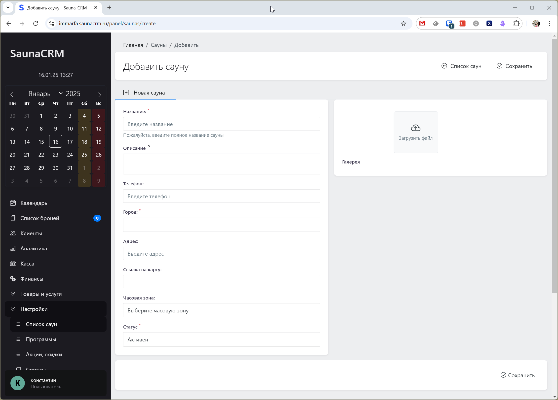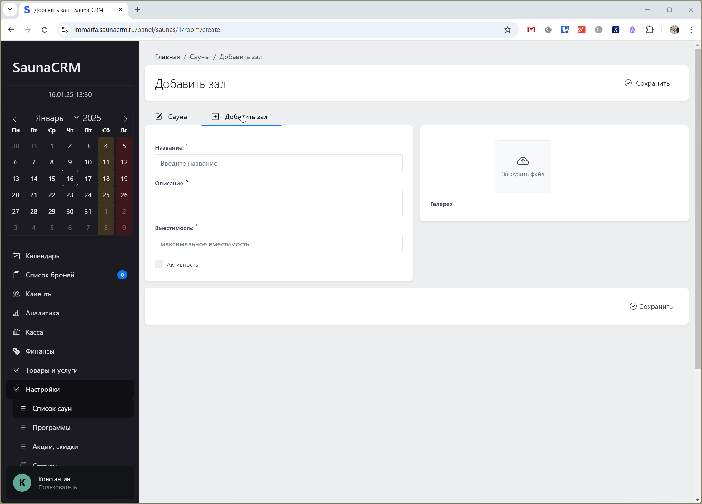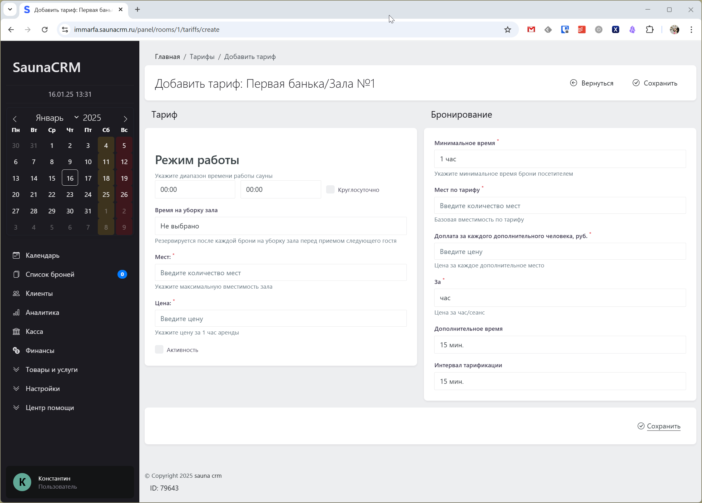 Добавление сауны тоже расположено на одном экране, где вы можете ввести всю необходимую для вас и клиента информацию.
