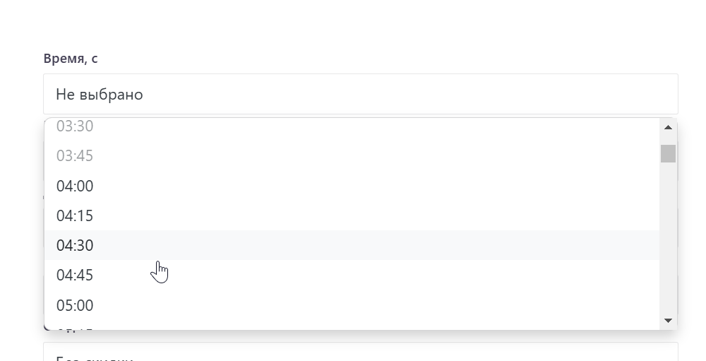 Правда, мне не очень понравился процесс ручного создания брони. Сервис не предлагает выбрать временные промежутки в соответствии с настроенным расписанием. Вместо этого в выпадающем меню отображаются все временные периоды дня, а доступные промежутки подсвечены более жирным шрифтом.