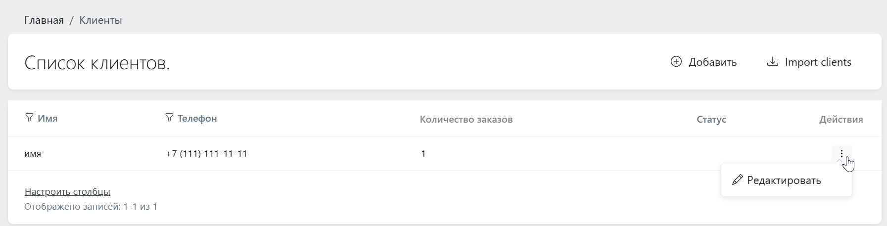 Любой клиент, по которому были заявки, автоматически попадает в этот раздел. Конечно, можно импортировать и добавлять клиентов вручную.