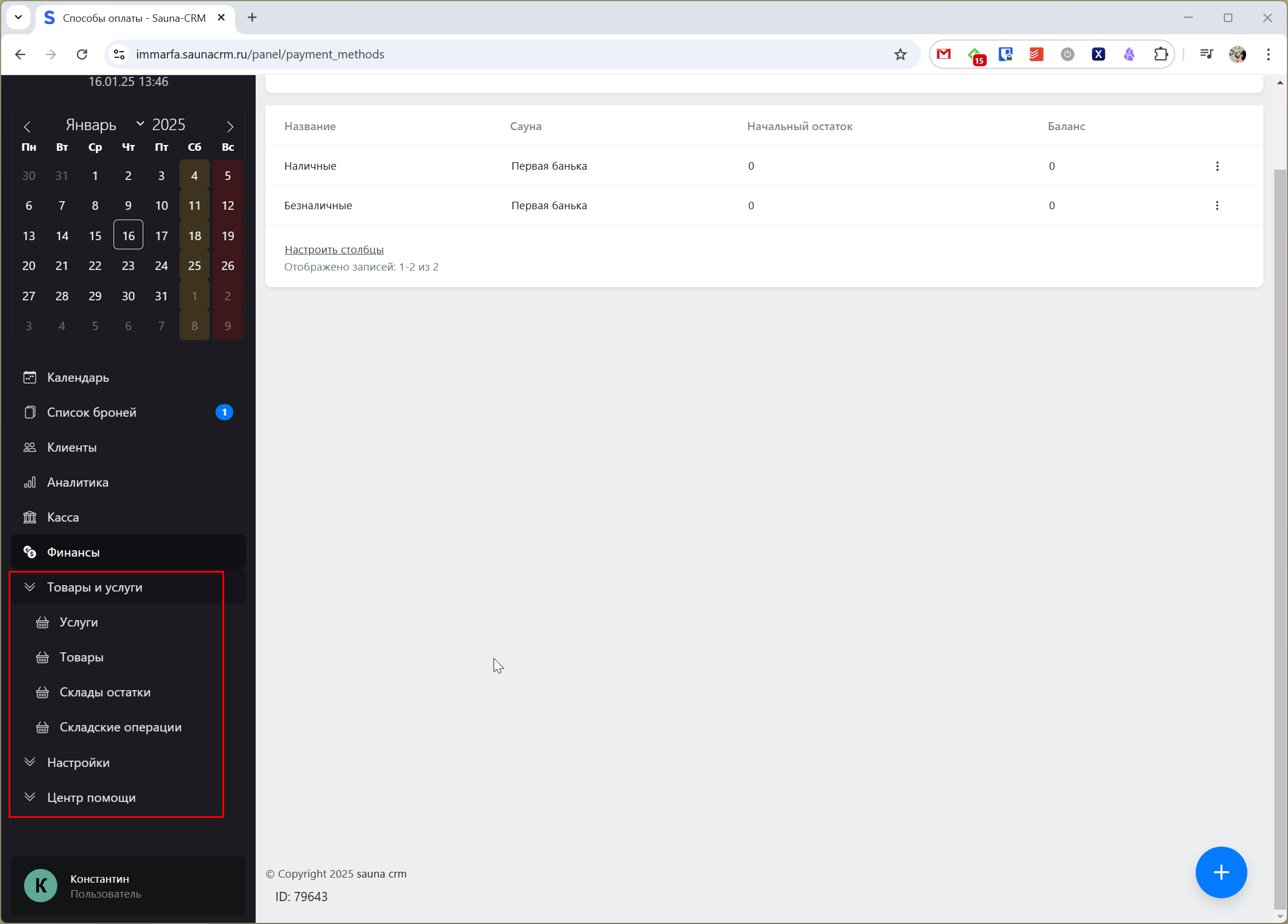 Всё очень просто. Редактирование списка саун, товаров, программ лояльности и способов оплаты происходит в соответствующих разделах меню на левой панели.