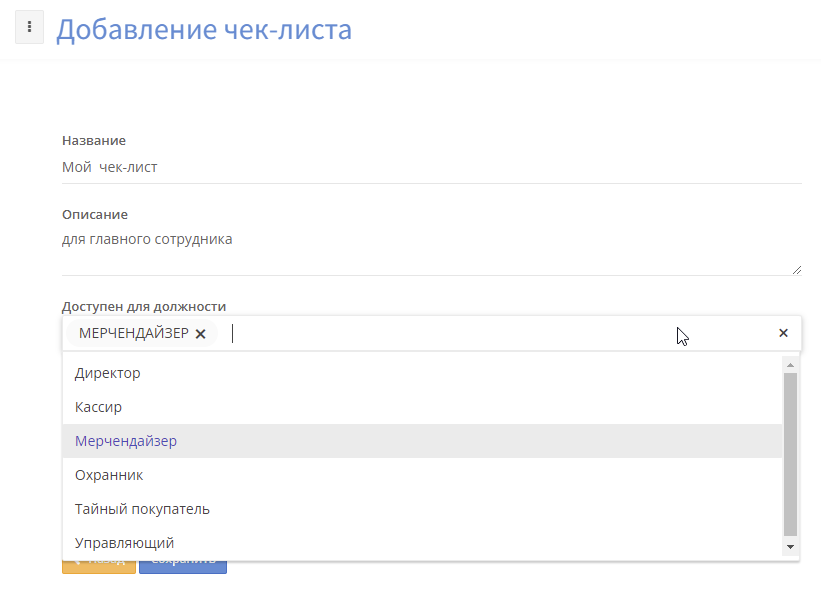 Конечно, можно добавлять и редактировать чек-листы. При создании списка нужно указать название, описание и ограничить его доступность для одной или нескольких должностей. Чек-листы также можно импортировать из файла.