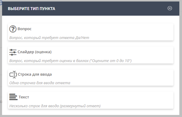 - Слайдер — оценка по шкале от 0 до 10;