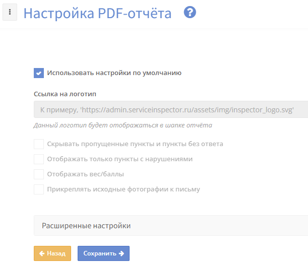 По окончании настройки чек-листа можно дополнительно настроить параметры создаваемого по нему отчёта. Либо оставить значения по умолчанию.