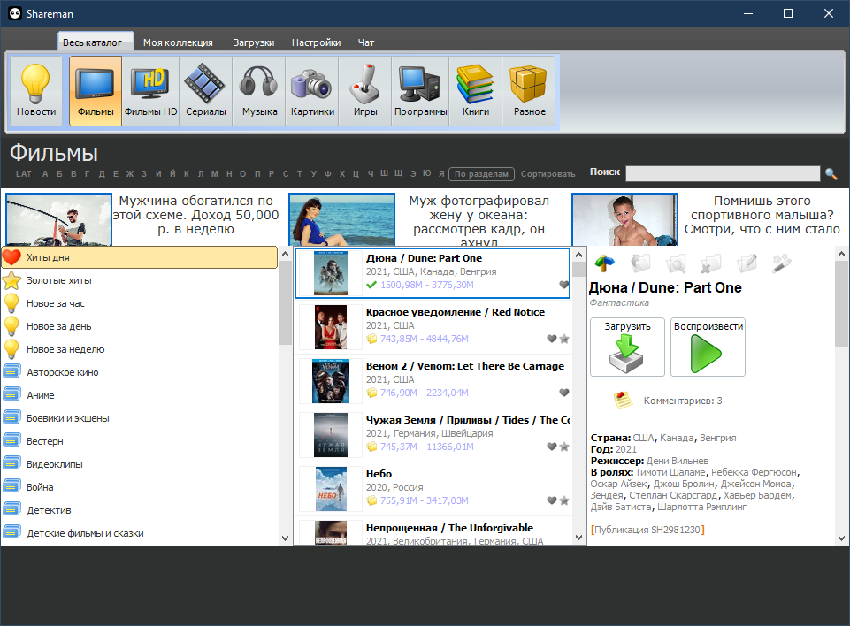 При этом вы можете скачивать новинки видеопроката. А значит, пользователи у Shareman явно есть. При этом качество файлов сильно уступает тем же торрентам и пиратским стриминговым сервисам.