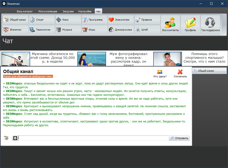 А, ну ещё есть чат, даже чаты по различным тематикам. К сожалению, для общения опять требуется регистрация.