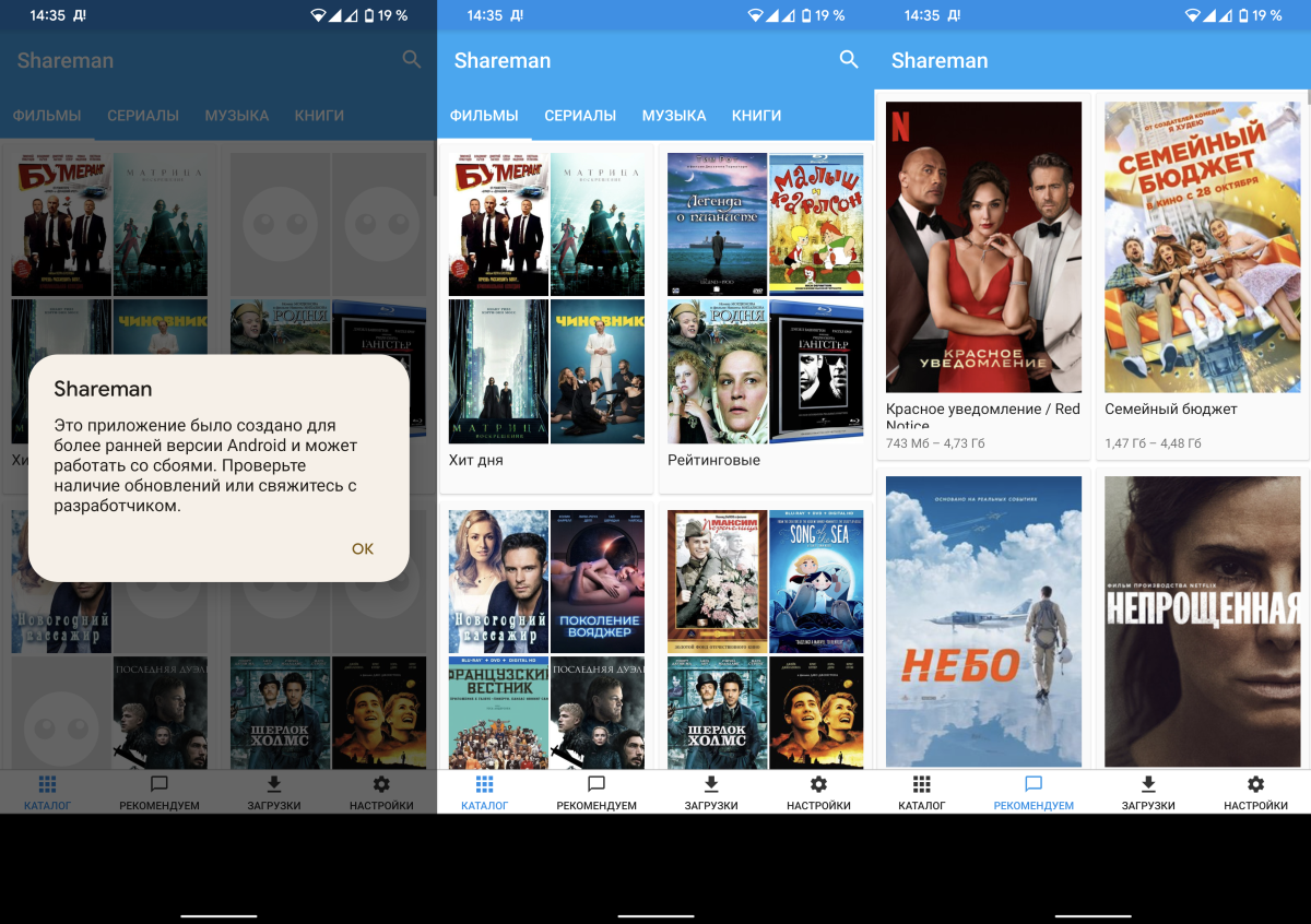 У меня смартфон на Android 12, и при запуске Shareman я получил предупреждение, что приложение разработано для более старой версии Android. А, следовательно, что-то может не работать. По факту всё работает без проблем, но всё равно как-то неприятно.