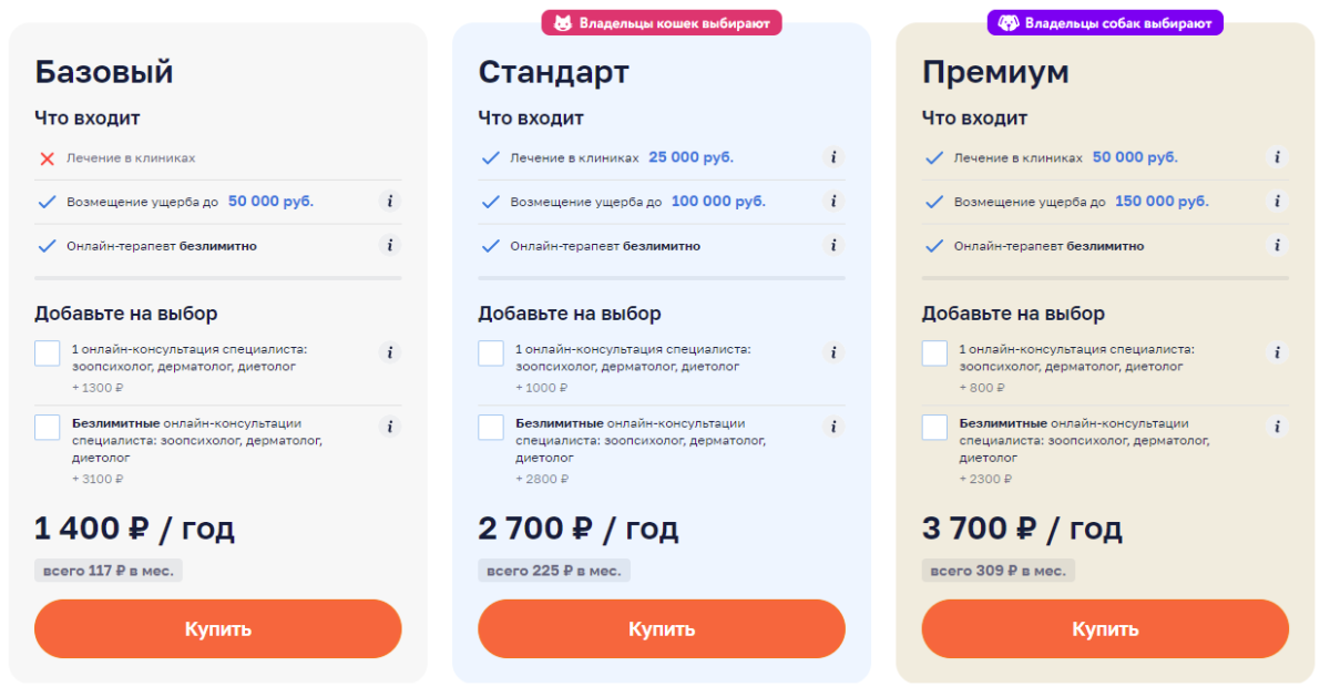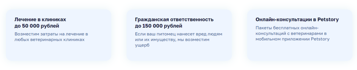 В полис Petstory входит 3 базовые опции: