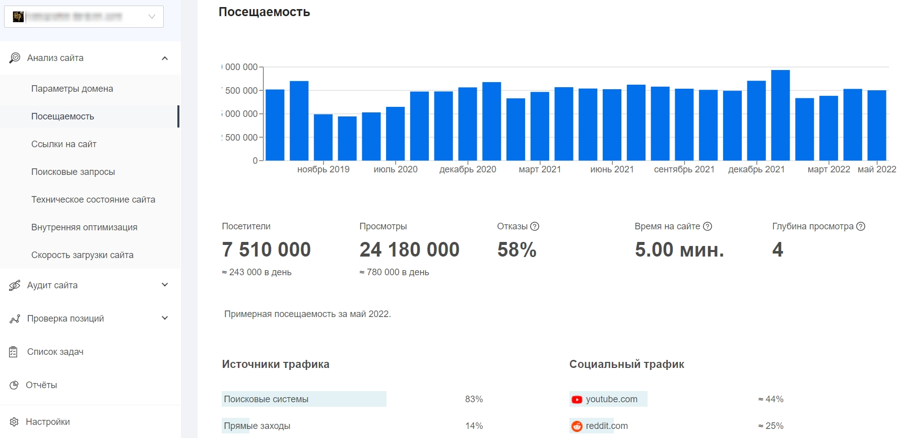 Данные будут более точными, если к сервису привязать ваши системы аналитики Яндекс или Google, счетчики которых размещены на сайте.