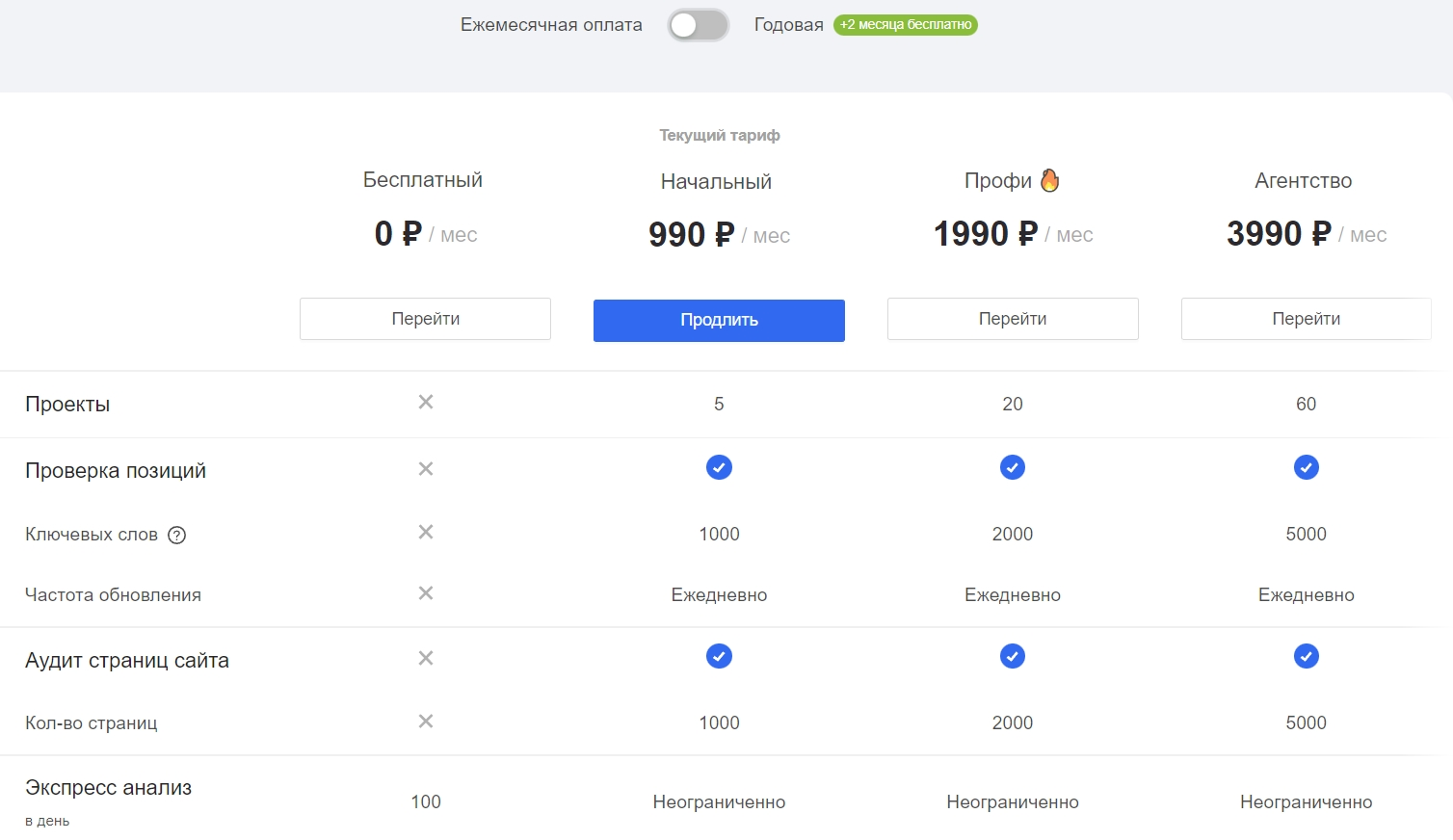 Поверхностная проверка общего состояния сайта доступна бесплатно. Остальное открывается при покупке любого тарифа, они отличаются лимитами и доступом к API.