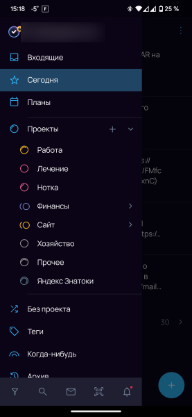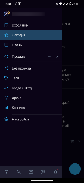 - Сбоку по умолчанию располагаются входящие задачи, задачи на сегодня, планы, календарь, проекты и разные задачи на потом или архивные.