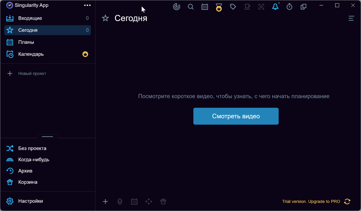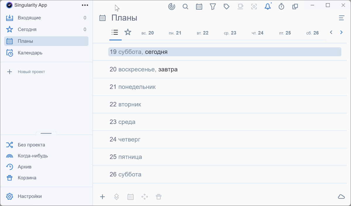 Чтобы начать пользоваться SingularityApp, вам потребуется авторизоваться в приложении через почту, Apple или Google. После чего вы получите полный доступ к планировщику.