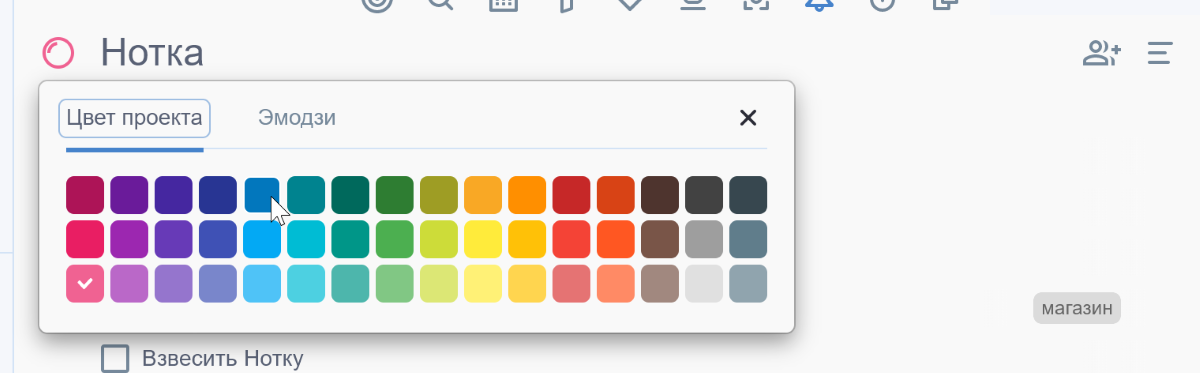 Доступно и цветовое разделение для проектов и задач. Также задачи можно защищать паролем или закреплять их в начале списка.