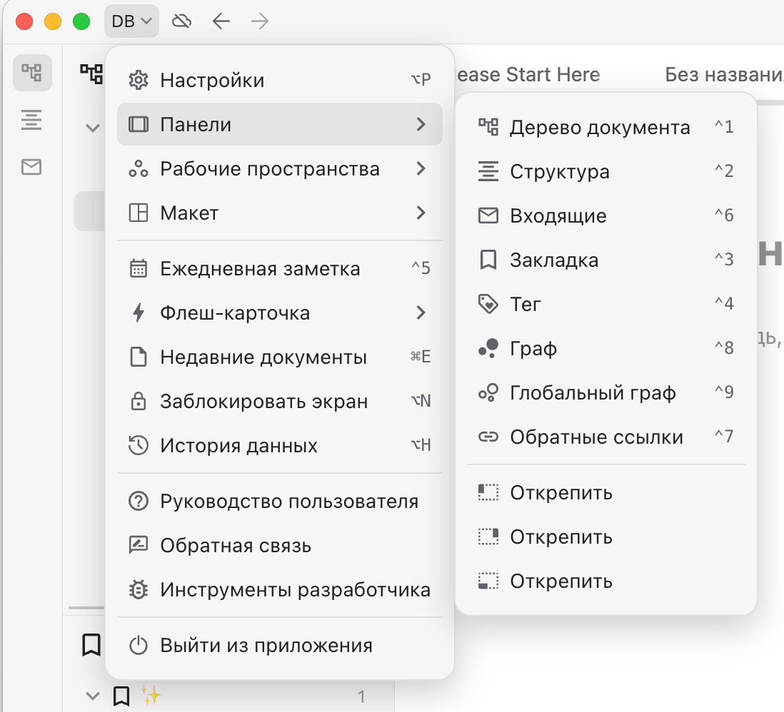 В остальном я бы сказал, что SiYuan скорее схож с Notion, чем с другими сервисами. У вас есть панель с базой данных и деревом заметок, в котором можно создавать несколько подпапок. А справа — просмотрщик текущей заметки с возможностью работы во вкладках.