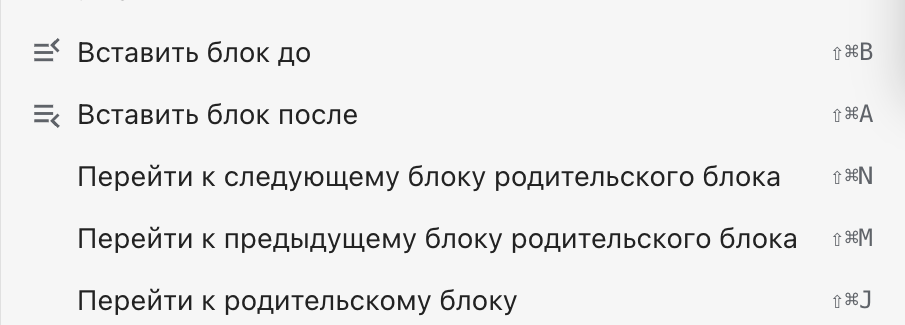 При вызове меню команд вам будет доступно ещё больше способов форматирования информации: виджеты, работа с ИИ, базы данных, референсные документы, чарты, графы, флеш-карты и многое-многое другое.