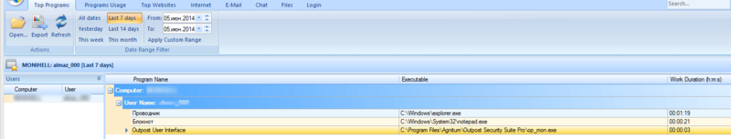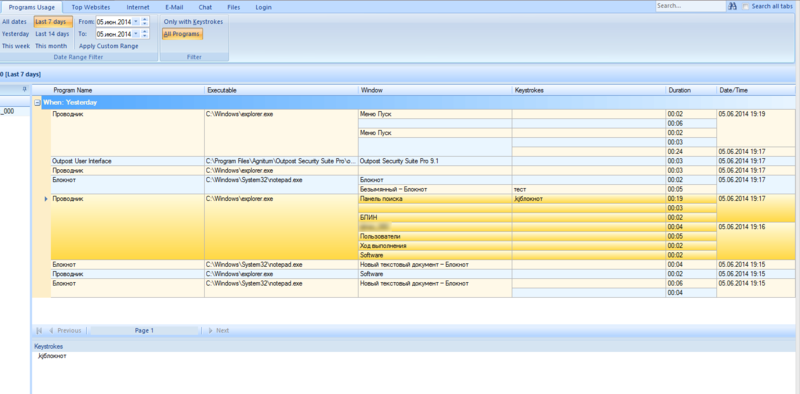 На вкладке Programs Usage мы уже можем более подробно посмотреть, что делал пользователь в той или иной программе. В этом же отчете можно узнать какой текст набирался.
