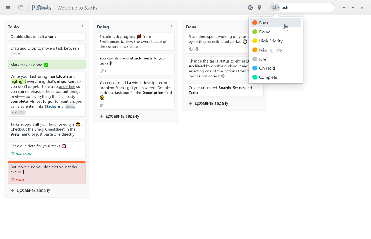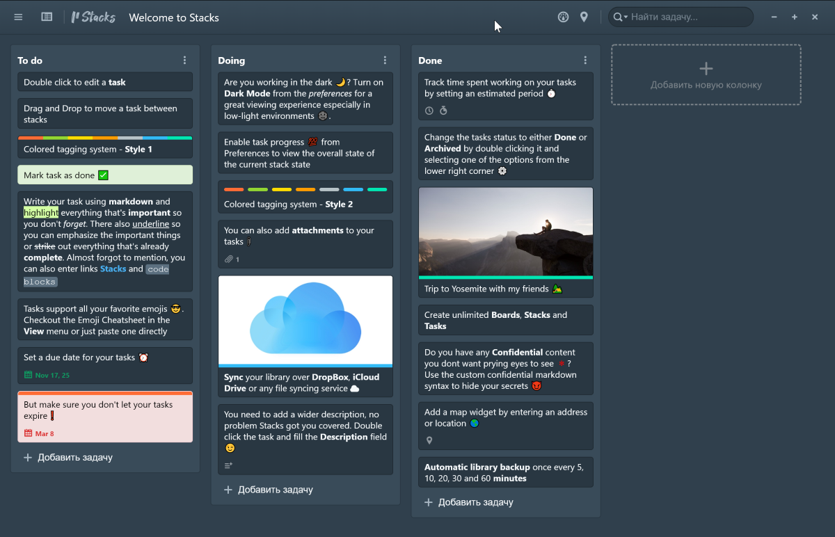 Stacks — простой в использовании менеджер задач, который поможет наглядно отобразить их на доске.