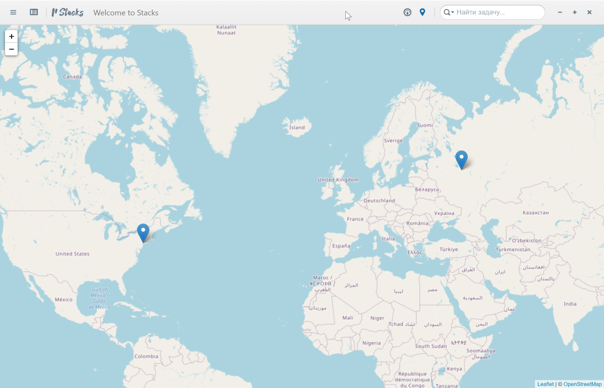 Второй — карта, на которой отображаются все гео-метки из задач.
