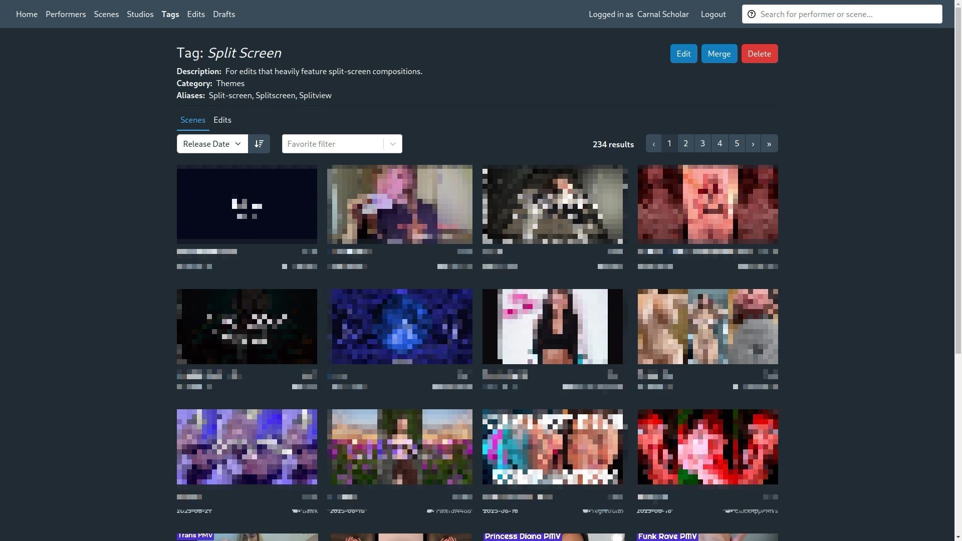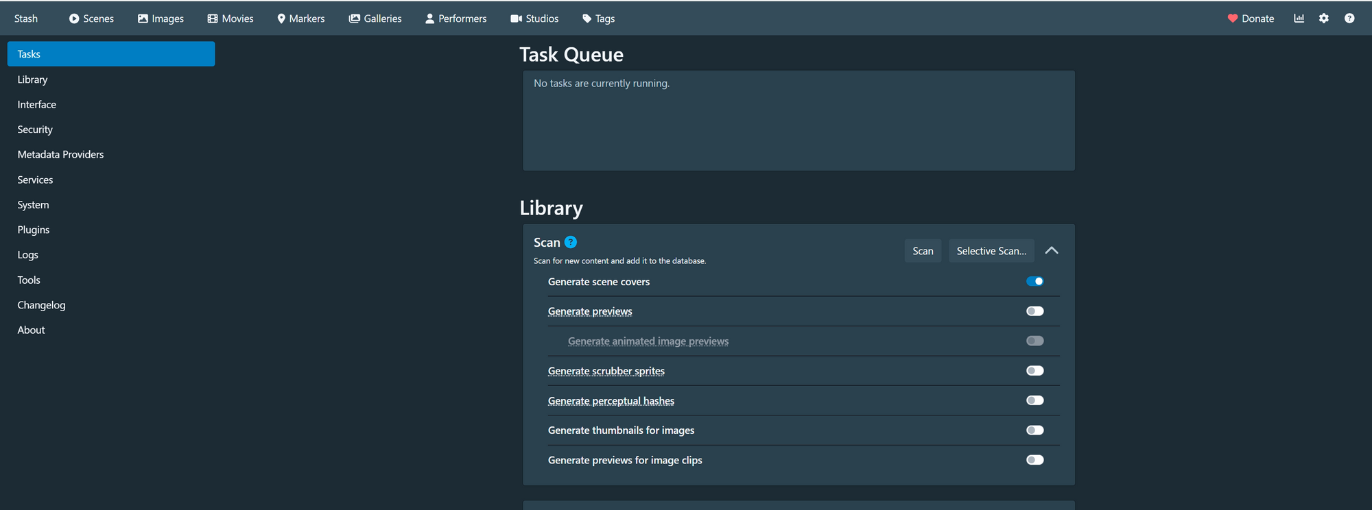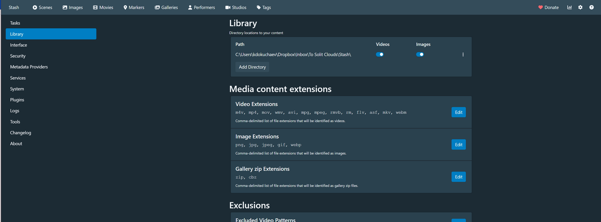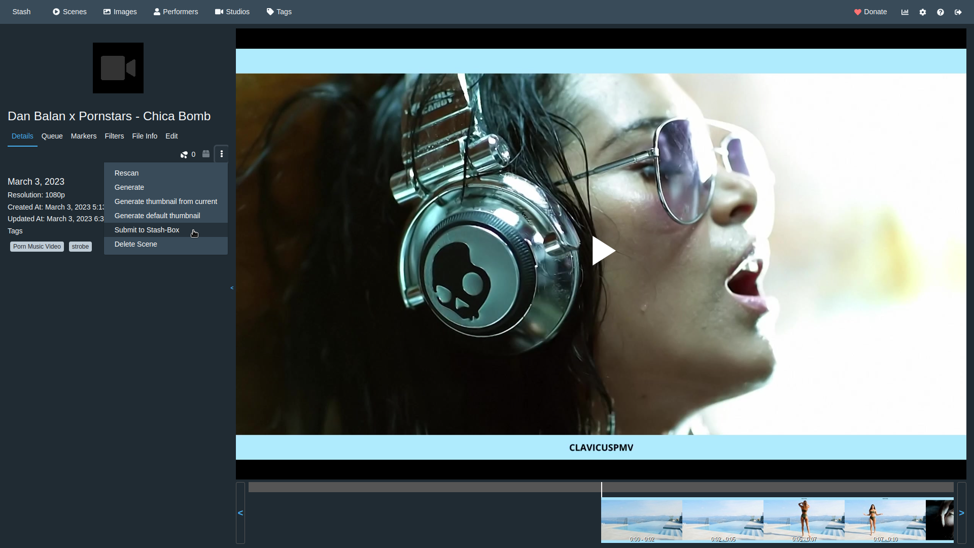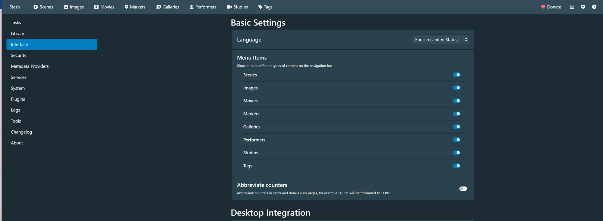Всего в Stash есть несколько разделов для хранения порно: отдельные сцены, изображения, метки, актёры, студии и теги.