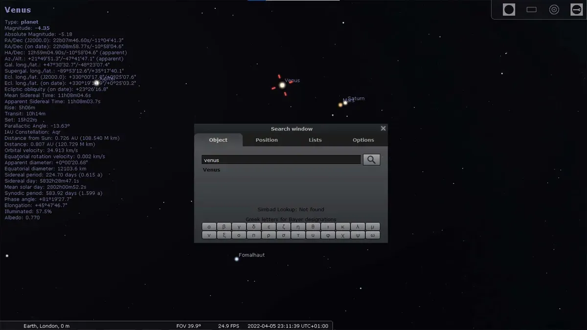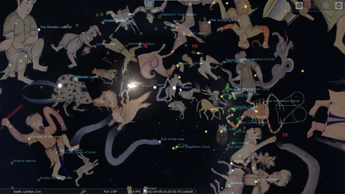 Stellarium предлагает огромный (основной) каталог с более чем 600 000 звёзд, плюс несколько дополнительных каталогов с более 177 млн звёзд. А чтобы просмотреть все объекты глубокого космоса в программе, вам придётся перелопатить кучу опций (не менее 80 000 штук).