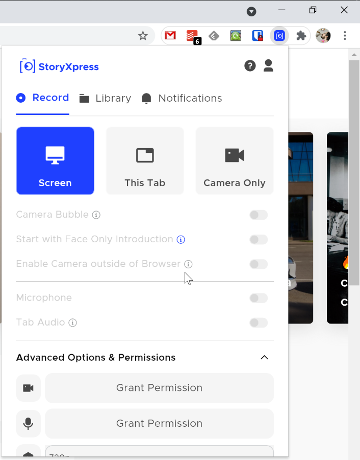 StoryXpress предлагает инструменты для скринкаста (запись видео с экрана). К сожалению (или к счастью), для этого нет отдельного приложения. Чтобы начать запись экрана, нужно установить расширение для Chrome, т.ч. запись будет работать хоть на Windows, хоть на macOS, хоть на Linux.