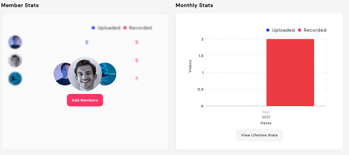 Дашборд разбит на несколько разделов. На главной странице есть небольшая статистика по загруженным и записанным видео (да, можно загружать свои видео).