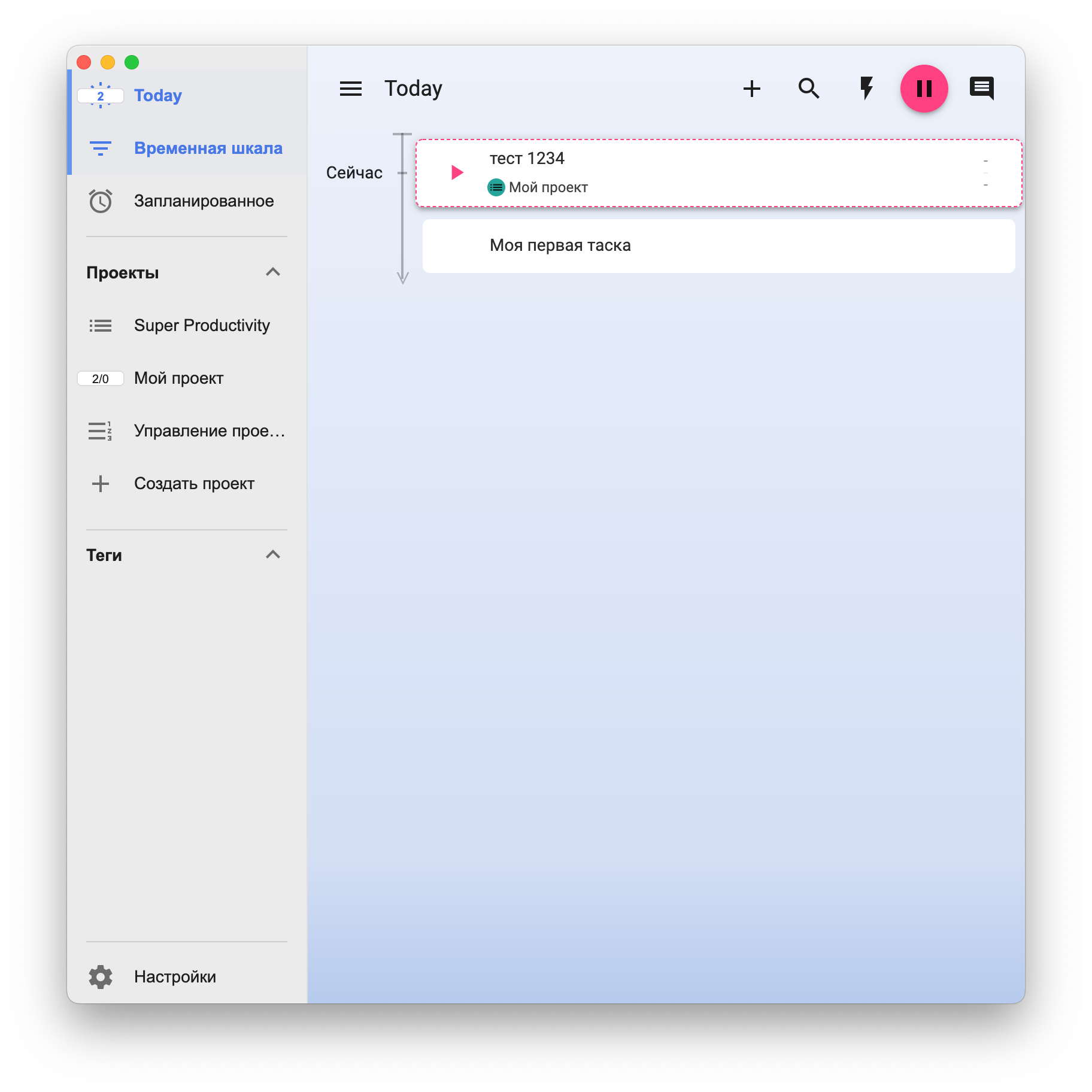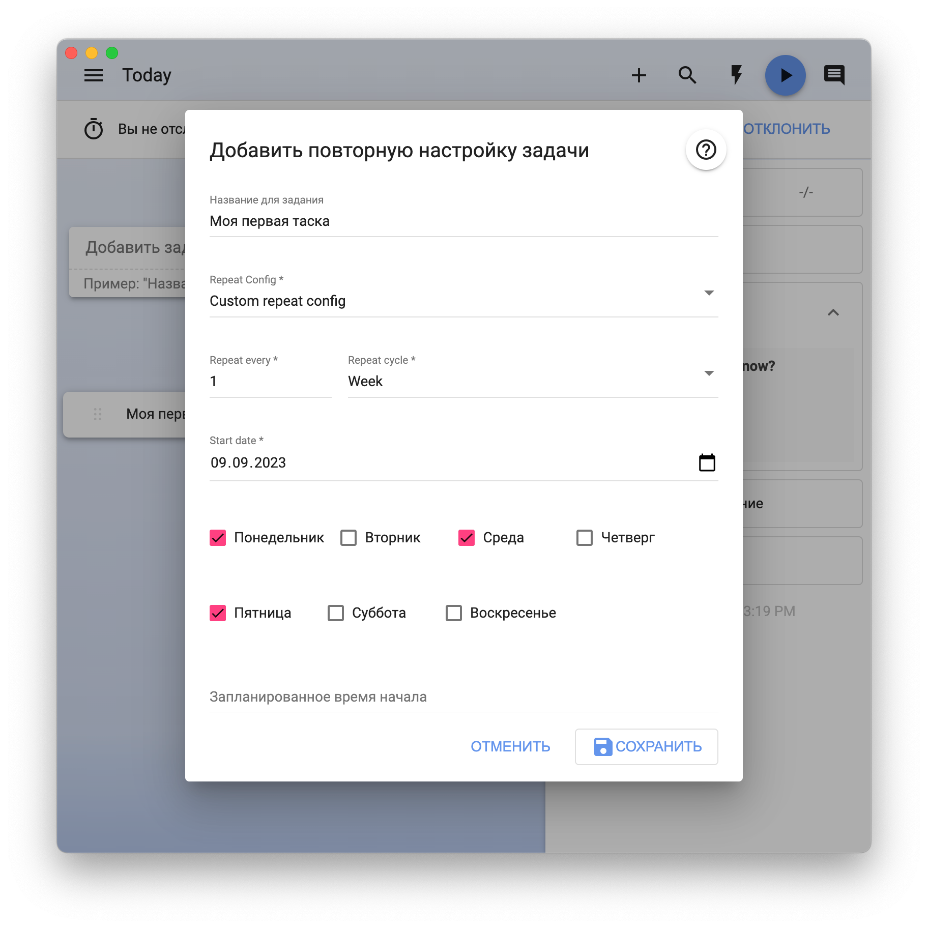 Мне важно точно настраивать время начала выполнения задачи и повторяемость. Например, ToDoist не справился с повторением задачи каждый вторник, среду и пятницу. А Super Productivity справился с этим без проблем.