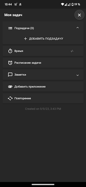 Также вдруг обнаружилась возможность создавать подзадачи. Я даже снова полез в версию для macOS, но так и не смог найти функции создания подзадач.