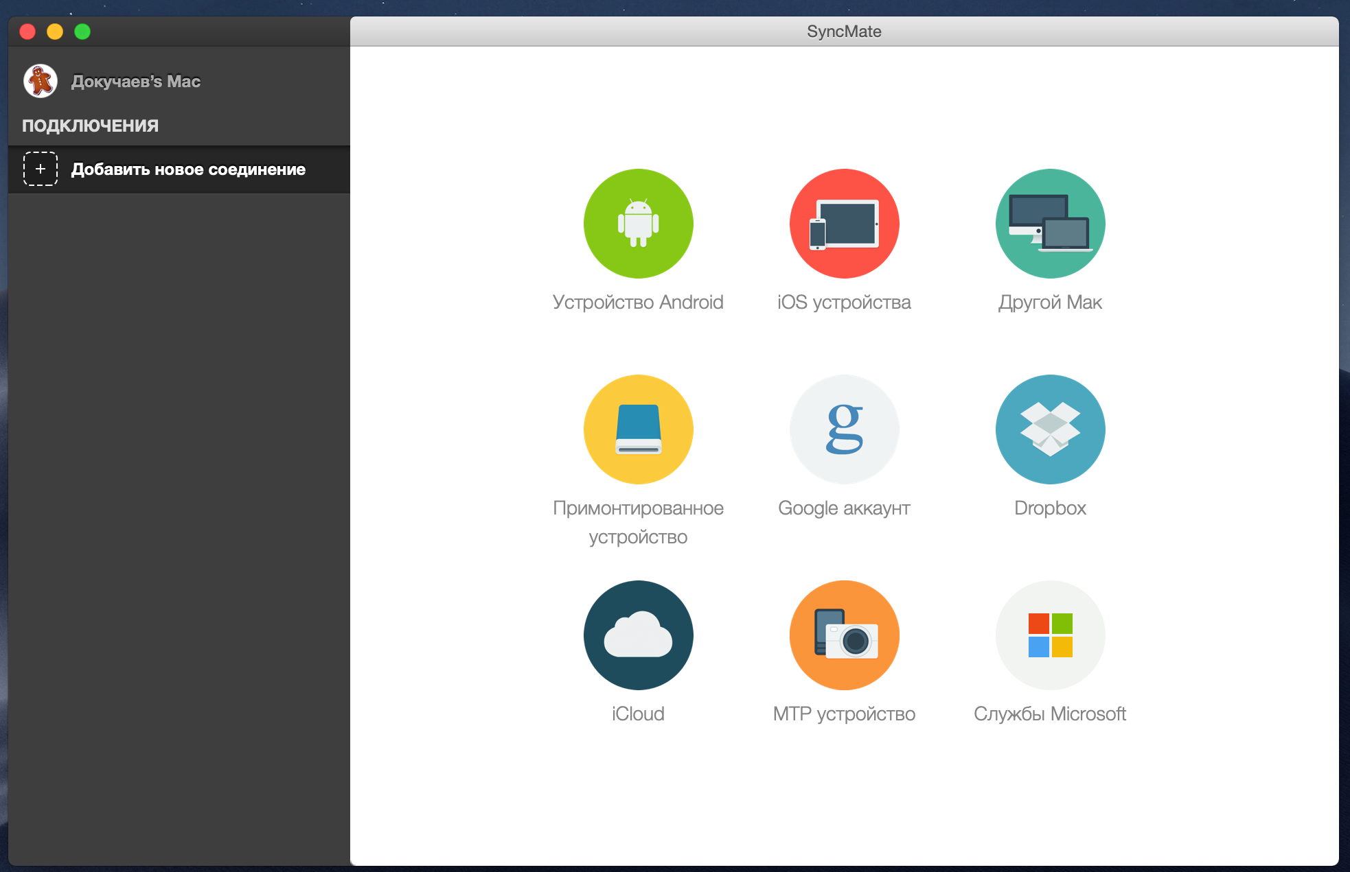 SyncMate синхронизирует данные на Mac напрямую с различными устройствами и онлайн-аккаунтами: Android и iOS-устройствами, Google, Dropbox и iCloud-аккаунтами, сервисами Windows, MTP-устройствами и др.