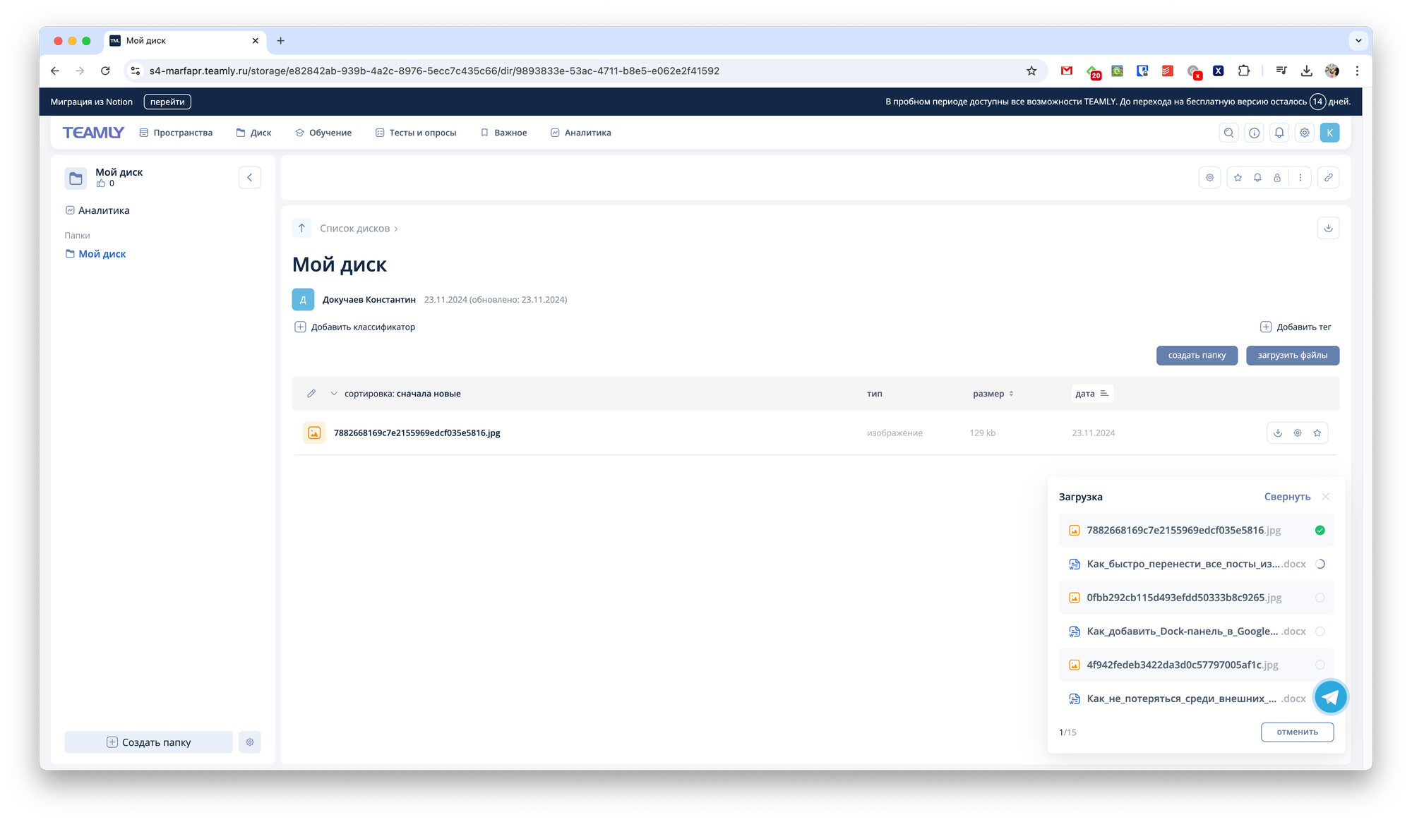 Можно создавать несколько дисков или папок с различными уровнями доступа к ним. Правда, в отличие от того же Google Диска, в TEAMLY нельзя просматривать или редактировать офисные документы. Придётся их скачать на устройство для работы.