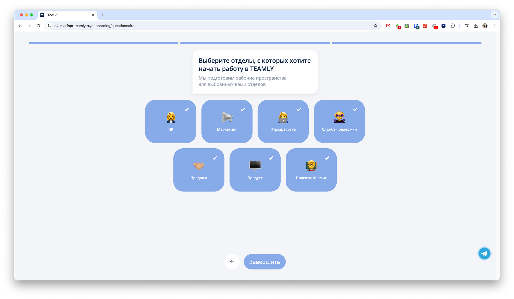 Если вы, как и я, подключили всё сразу, то у вас будет несколько пространств под каждый отдел компании: проектный офис, HR, служба поддержки, разработка и прочее.