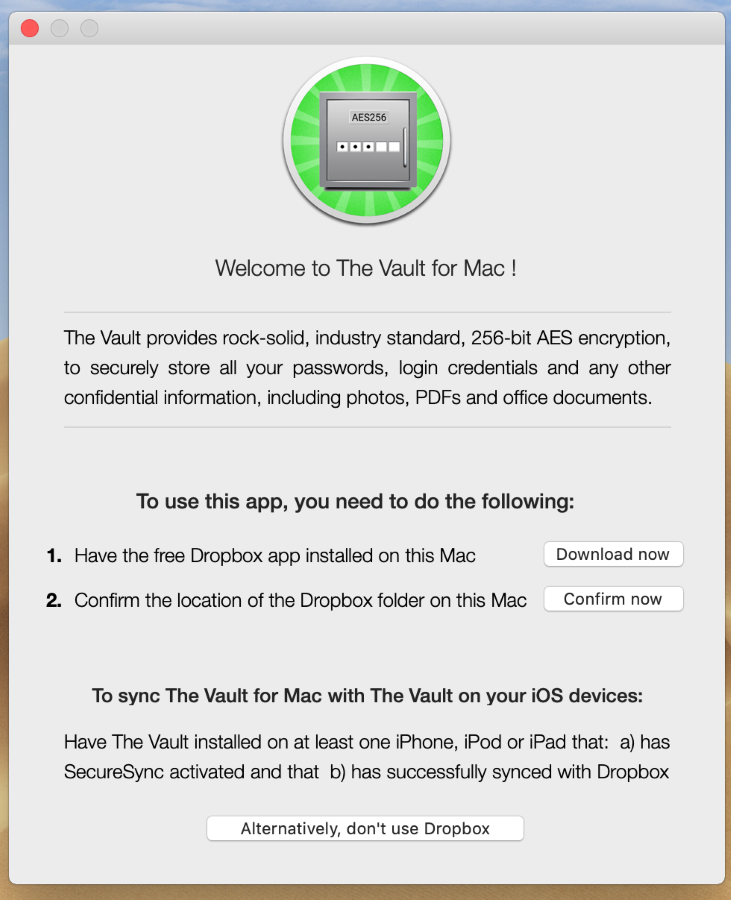 Для синхронизации между Mac-устройствами этого достаточно. Для синхронизации с iOS на смартфоне нужно будет включить «Vault Secure Sync».