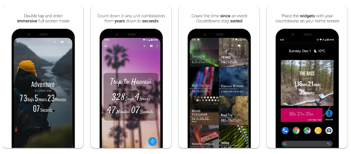 Time Until от разработчика Bruno Schalch. Это Android-приложение с возможностью создания нескольких таймеров и виджетов на главном экране устройства.