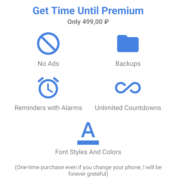 Платная версия за 499 рублей снимает все ограничения, отключает рекламу, добавляет возможность создавать резервные копии, ставить оповещения и даёт больше кастомизации.
