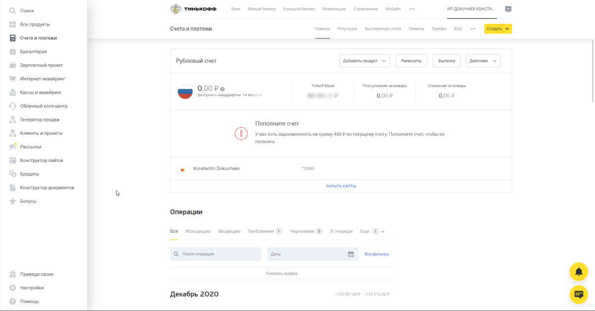 Счёт в Тинькофф я открыл по неопытности и глупости. Я наивно предполагал, что клиенты будут переводить деньги напрямую по номеру бизнес-карточки Тинькофф, как это делают нормальные физлица. И только потом я узнал, что это так не работает, и нужны всякие онлайн-кассы.