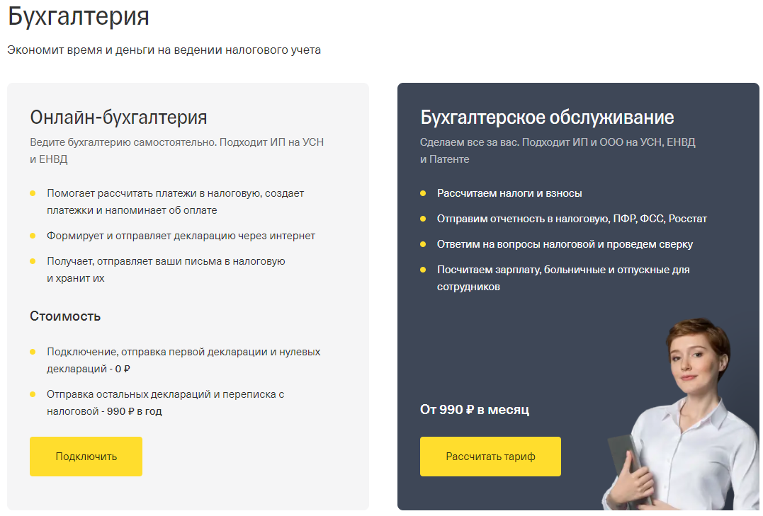 О качестве работы встроенной бухгалтерии на своём опыте я не могу рассказать, так как даже не пытался ей пользоваться. В случае если вы хотите самостоятельно вести бухгалтерию, услуга будет стоить 990 рублей в год. Вы сможете рассчитать налоговые платежи, создать платежки, декларации, работать с письмами.