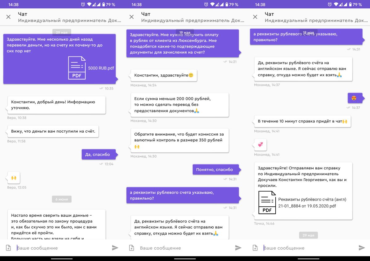 Этот пункт я бы хотел выделить отдельно. Всем известно, что техподдержка, а особенно поддержка в чатах — роботы и умеют только в скрипты. Ребята из Точки, наоборот, общаются человеческим языком и помогают в любых ситуациях, которые даже явно не входят в их компетенцию.