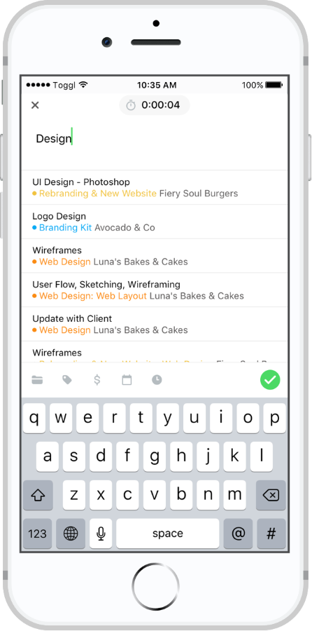 Закончили работу — нажмите стоп. Время автоматически зафиксировалось.