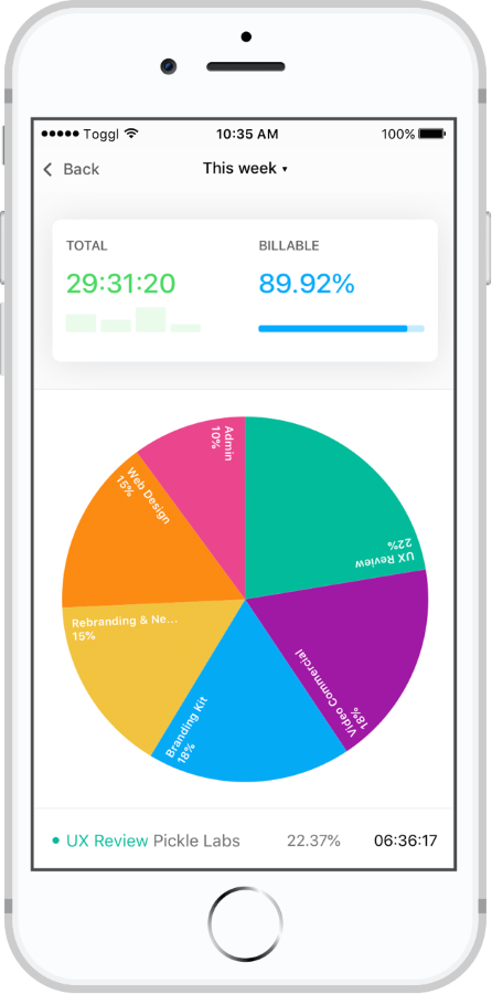 Поскольку с Toggl я работаю один, я не могу оценить все возможности командной отчётности. Но я могу сказать, что сервис поддерживает экспорт данных в Excel, CSV и PDF. Можно сравнивать затраты между проектами и визуализировать данные по отдельным сотрудникам и задачам.