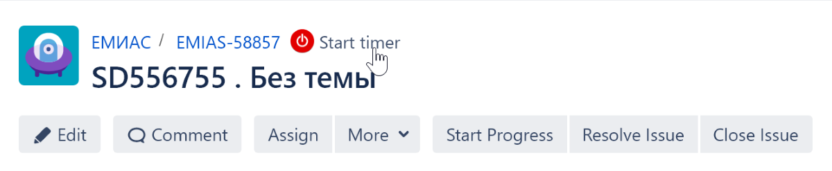 Поскольку я работаю с Jira, я в настройках указал интеграцию с нашим рабочим доменом. После чего у талонов появился значок Toggl для старта таймера.