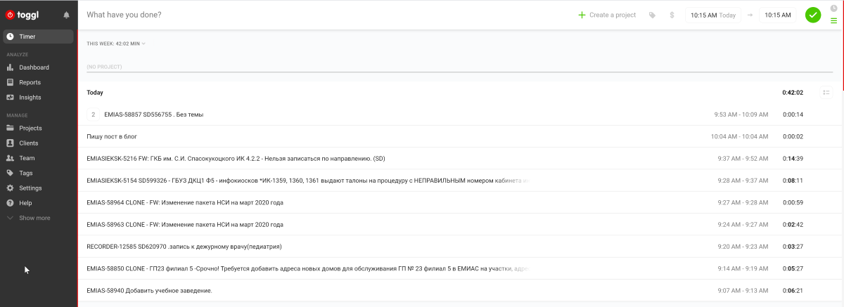 Для меня Toggl оказался идеальным вариантом для отслеживания трудозатрат. Но я не фрилансер, у меня нет необходимости ведения нескольких проектов, работы с клиентами или в команде.