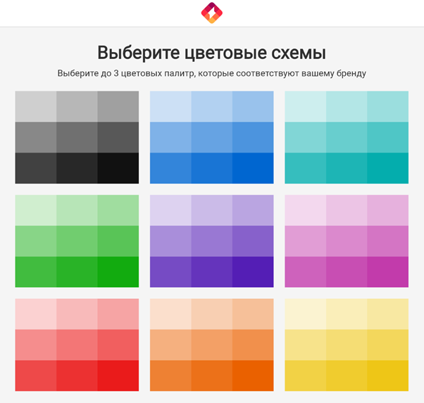 На следующем шаге нужно выбрать до трёх цветовых палитр, которые лучше подходят для вашего бренда.
