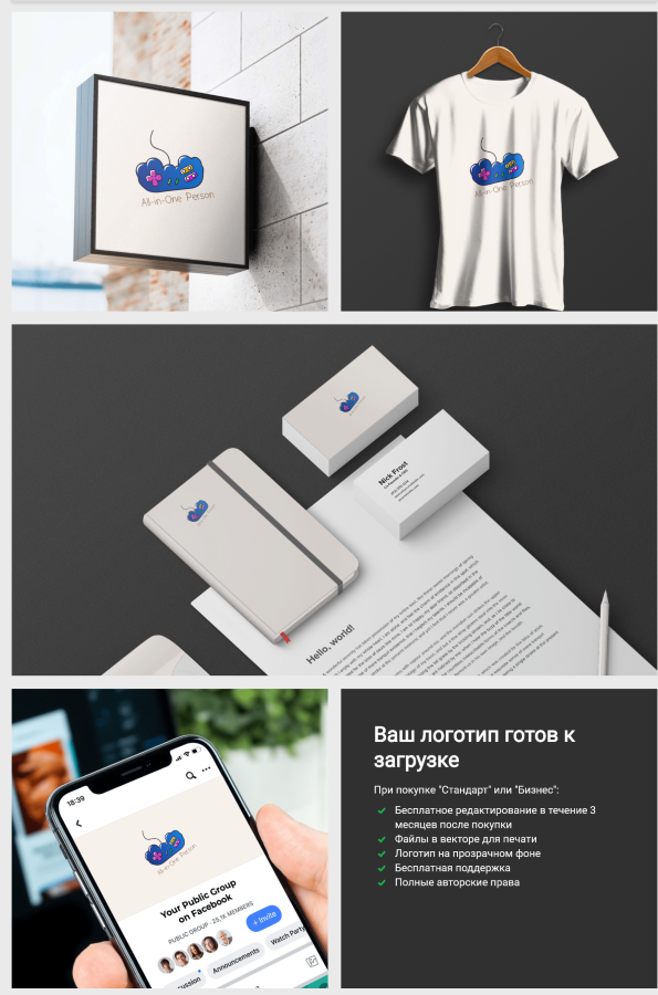 Более дорогие тарифы включают ручную работу дизайнера. Он поможет создать бизнес-документацию и набор картинок для обновления стиля социальных сетей.