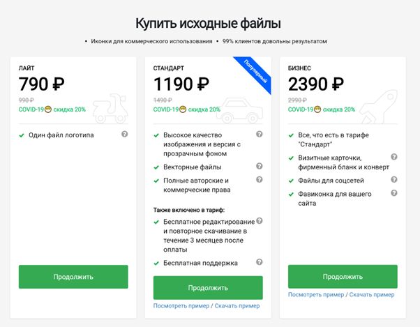 Само создание логотипа бесплатное. Оплата, как обычно, берётся за скачивание исходников. Стоимость начинается от 790 рублей.
