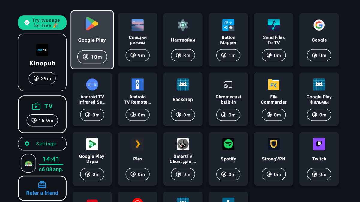 На самом деле я не знаю других подобных приложений для Android TV, и сравнивать могу только с дефолтными настройками самого телевизора. В этом случае tvusage бесспорно уделывает телевизор по возможностям.