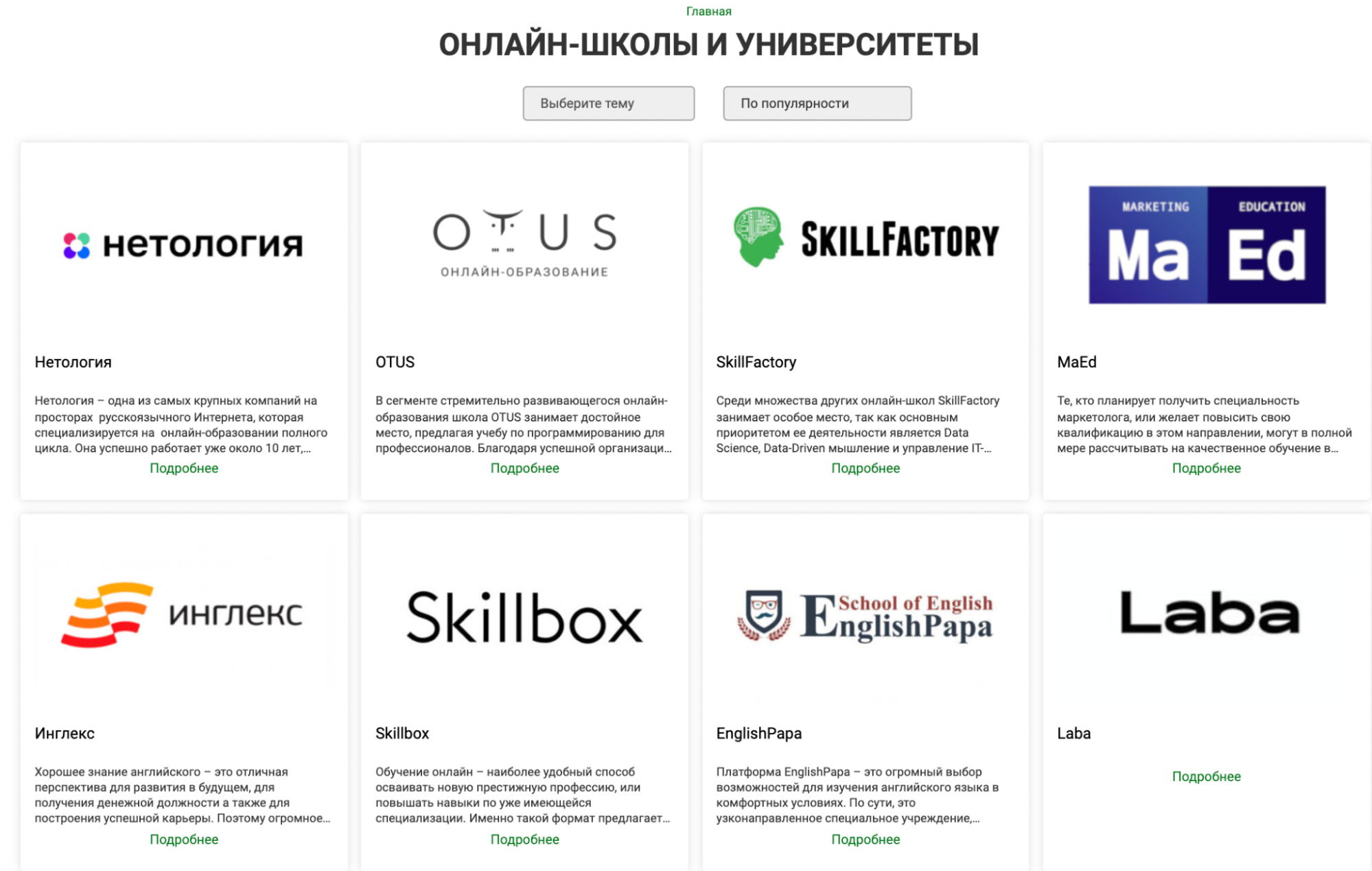 Какие онлайн-школы есть на сервисе